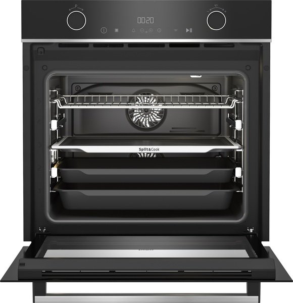 2 духові шафи в 1. Використовуйте духову шафу максимально ефективно. Тепер можна готувати дві страви одночасно, не витрачаючи час і електрику. Технологія Split&Cook дає змогу розділити духову шафу на дві частини, кожна з яких матиме індивідуальний вентилятор, таймер і терморегулятор, завдяки чому можна готувати дві страви без змішування їхніх запахів. Це як дві духові шафи в одній.