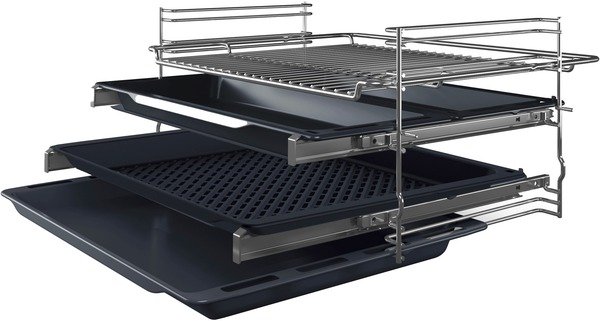 LCD-дисплей керування знаходиться на фронтальний панелі приладу. Дисплей простий у використанні, надає прямий доступ до додаткових функцій та налаштувань. Висувні утоплювані ручки дозволяють легко керувати приготуванням та полегшити очищення зовнішньої панелі духової шафи.