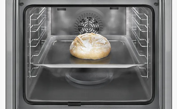 Додаючи пар під час випікання, наприклад, хліба, ви отримуєте ще кращий результат. Пара запобігає висиханню їжі, забезпечує апетитну хрустку скоринку та зберігає хліб ніжним та пухким всередині. Просто налийте необхідну кількість води в невелику знімну чашу для води, яка підходить для миття в посудомийній машині та інтегрована в дно духовки. Потім увімкніть спеціально розроблений режим нагрівання «гаряче повітря з парою».Таким чином, інші страви, приготовані шляхом випікання або запікання, також стають більш смачними.