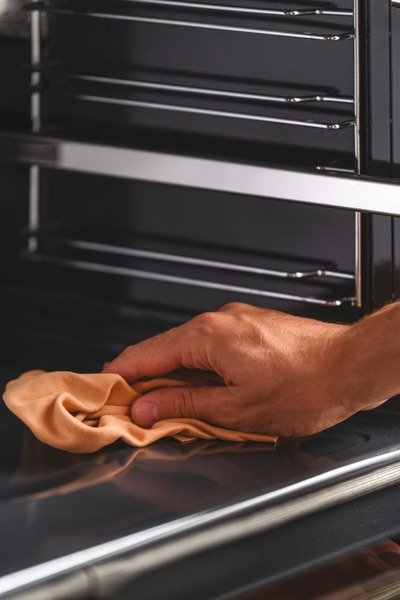 Система очищення H2O - це гідролітична система, яка дозволяє очистити духовку простим, швидким і економним способом. Просто наповніть спеціальний простір у нижній частині духовки 300 мл води, встановіть відповідну програму та залиште духовку на 30 хвилин. Після закінчення циклу брудні залишки можна легко витерти губкою.