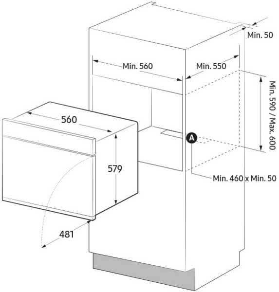 | Висота для вбудовування, мм | 590-600 |
