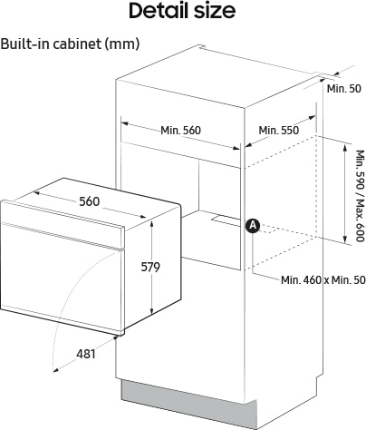 | Ширина для вбудовування, мм | 560 |