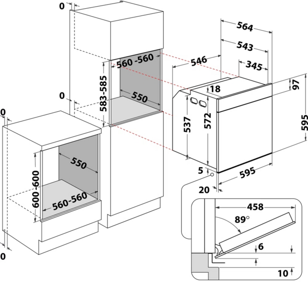 | Висота для вбудовування, мм | 583-585 |