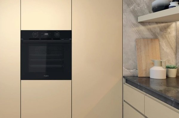 Ця духова шафа Whirlpool має слайдерну систему полиць для зручності використання.