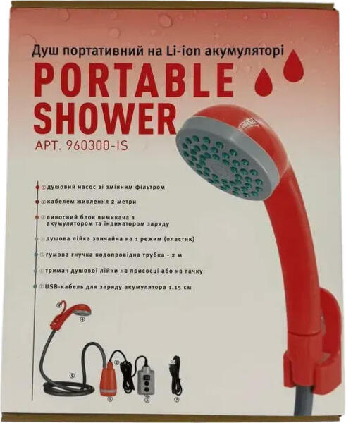 - Душ туристичний портативний Poputchik на Li-ion акумуляторі 2200мАг (960300-IS)