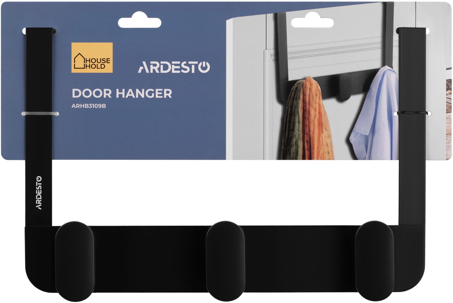- Дверний вішак на 3 гачки ARDESTO Minimalism 30x3x20см, метал, пластик, чорний (ARHB3109B)