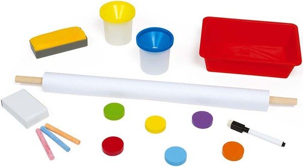 Малюйте на великій дошці-мольберті від французького бренду Janod! Мольберт, який складається з декількох частин, збирається швидко та легко. Дошка для творчості двостороння - на білому боці малюйте маркерами, а на чорному - крейдою. Використовуйте маркер, що входить до набору, - він оснащений спеціальною губкою, що легко стирає малюнки. До крейди також надається пориста губка, таким чином, поле для творчості можна легко і швидко очистити в будь-який момент. Висота зібраного мольберта регулюється - від 91 до 126 см. Розмір робочої поверхні: 47х47,5 см. Розвивальний набір допоможе дитині підготуватися до школи, навчитися писати, рахувати та розвинути творчі здібності.