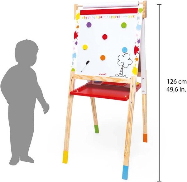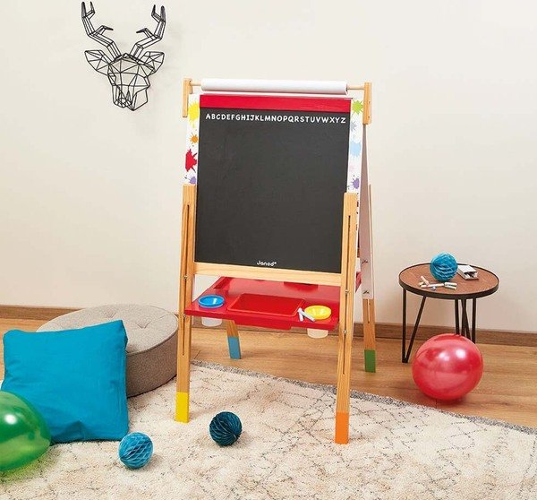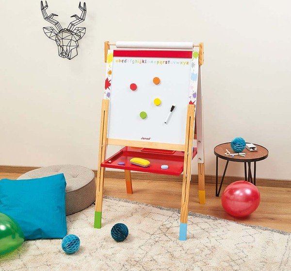 Двухсторонний деревянный мольберт Janod настолько интересный для детей, что избавил нас с женой проблемы, как отучить младшего сына от планшета. Купили его по совету моей сестры, она детский врач и теперь только радуемся. Сделан из качественного дерева, нет пластика от которого идёт неприятный запах, легко раскладывается и обратно собирается, так что места в квартире особо не занимает. Рисовать малыш может на разных досках, с одной стороны простыми мелками, а с другой фломастерами. Очистить её тоже не трудно, либо простой влажной тряпкой, либо специальной губкой, которая есть в комплекте. Взять решили на этом ресурсе, цена нам подошла и много отзывов.