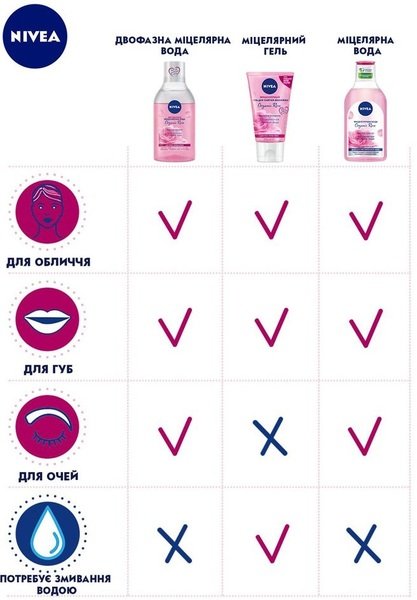 Схожі товари Двофазна міцелярна вода Nivea Organic Rose 400мл