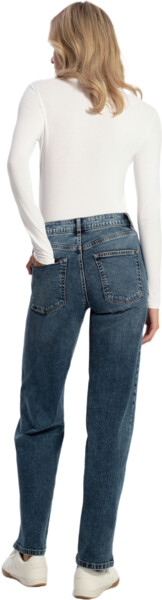 Джинси Straight стануть не лише частиною базового образу, а й чудово підійдуть для експериментів зі стилем. М'який денім і прямий крій роблять модель зручною, а ефект потертості та вінтажна обробка надають унікальності її дизайну.