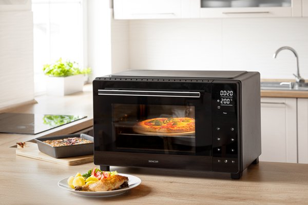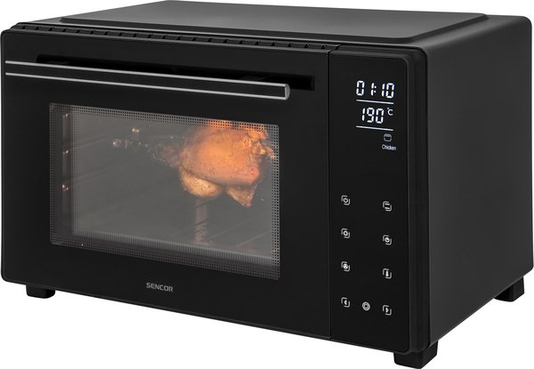 Ємкості електродуховки у 35 літрів на двох-трьох чоловік аби приготувати їжу вистачає з головою. Потужність пристрою дозволяє досконало готувати різноманітні страви, розморожувати продукти, підігрівати їжу.