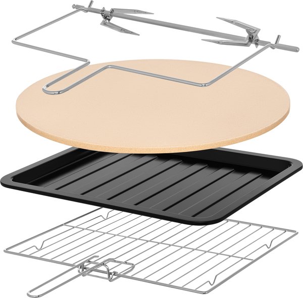 Качественная сборка, в комплекте решетка (не прогибается), карго, вертел для курицы гриль (хорошего качества, не гнется), противень, лист для сбора крошек. Удобное меню и программы, тихая конвекция, работает на 10 из 10. Несколько неудобно, что бока и верх сильно греются – надо об этом помнить и быть осторожным, но низ - не особо. Выпечка равномерно пропекается. Блюда получаются вкусными за счет широкого выбора функций.