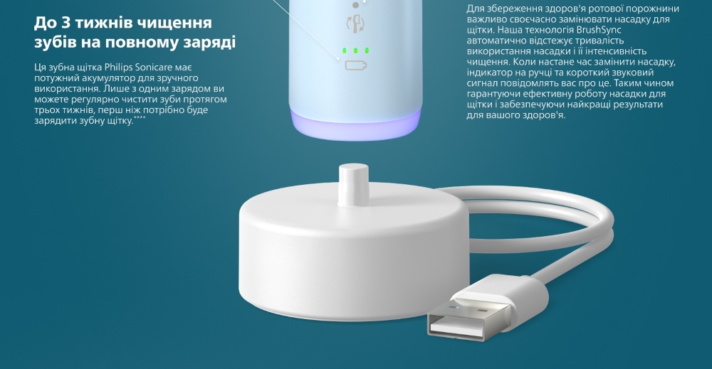 | Комплектація (можливі зміни в різних поставках) | Документація, Зарядний пристрій, Зубна щітка, Насадка |