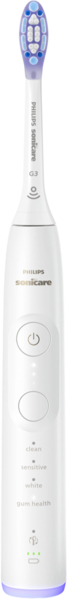 Починайте кожен день стильно з передовою технологією Sonicare. Щітка 7100 з насадкою G3 Premium Gum Care забезпечує до 7 разів здоровіші ясна та до 10 разів краще видалення нальоту лише за 2 тижні. Інтелектуальна система магнітного чищення дбайливо очищує уздовж лінії ясен і між зубами, автоматично адаптуючи потужність. Світлове кільце попереджає про надмірний тиск, а SmarTimer допоможе дотримуватись рекомендованих 2 хвилин чищення.