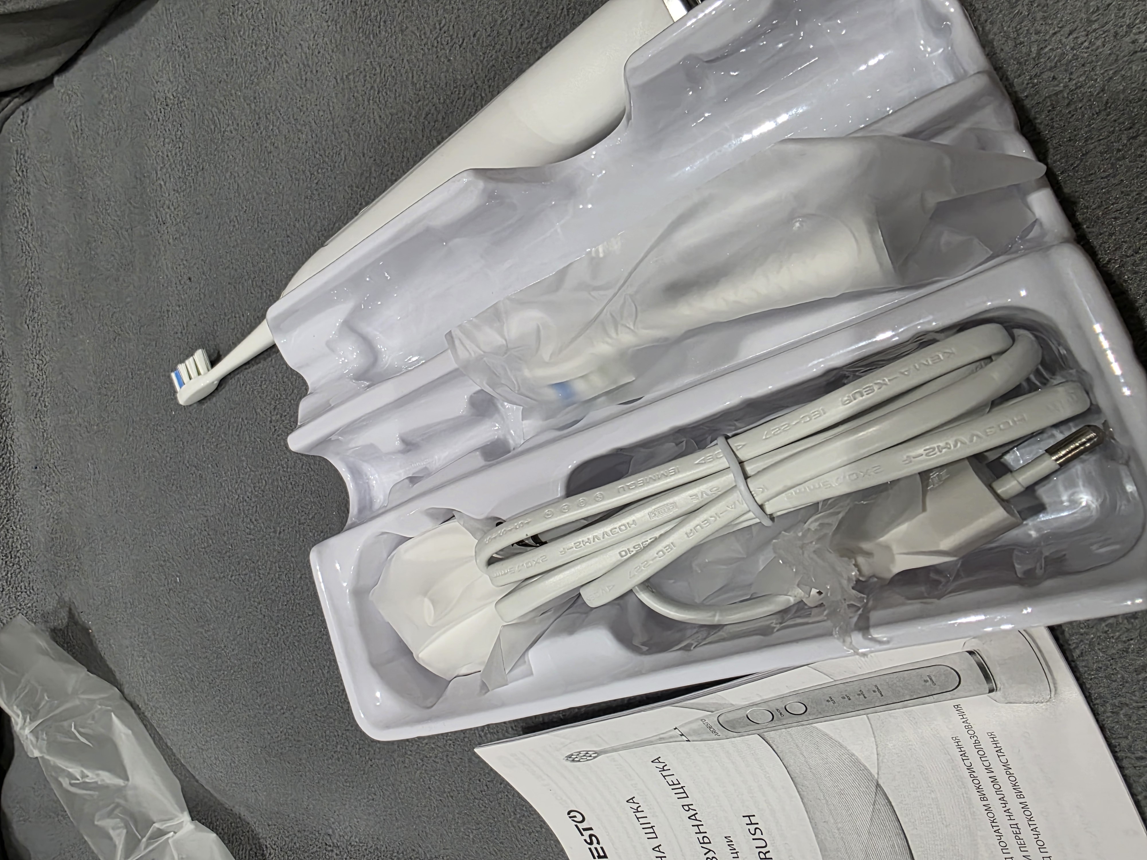 | Комплектація (можливі зміни в різних поставках) | База для заряджання, Насадки – 2 шт., Щітка |
