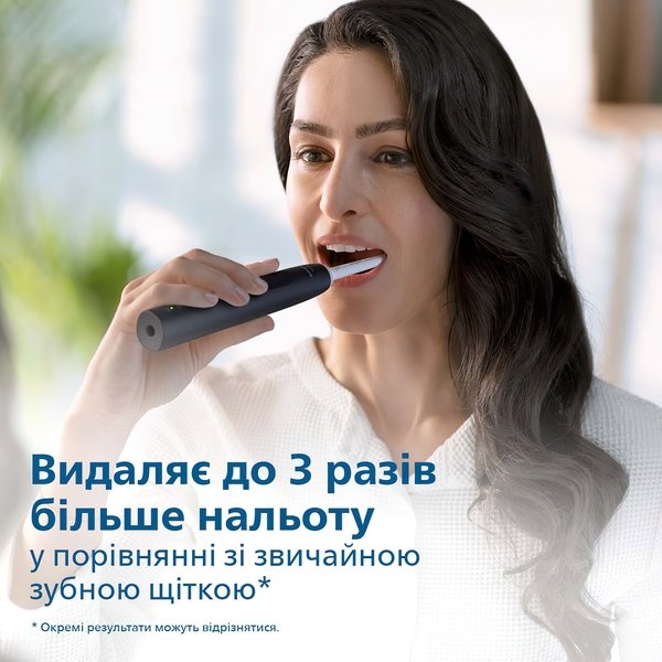 - Вдосконалена звукова технологія Philips Sonicare спрямовує потік води між зубами, що разом з рухом щітки руйнує та усуває наліт.