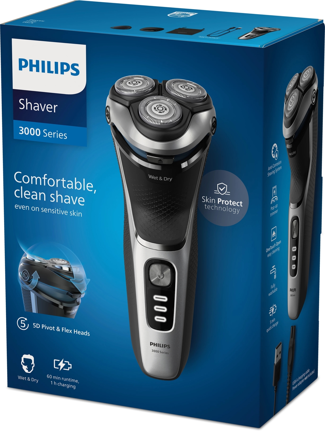 Згинаючись і обертаючись у п'яти напрямках, голівка повторює кожен вигин вашого обличчя – зрізаючи щетину трохи вище рівня шкіри для чистого, комфортного гоління навіть чутливої шкіри.