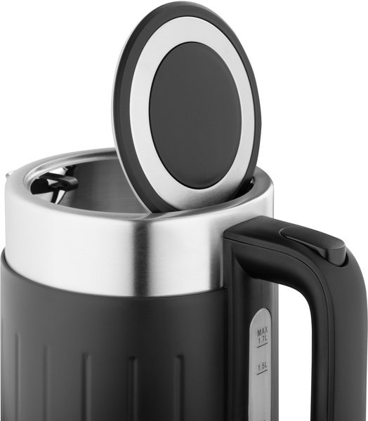 Отличный чайник, красивый дизайн, круто смотрится на кухне, идеально дополняет мой тёмный стиль, который я я собираю уже не первый год) Воду греет быстро, чай приготовленный водой из нового чайника будто стал даже вкуснее)) Материалы из которых сделан чайник качественные, пластик не скрипит, сталь нержавеющая внутри, когда закончилась вода очищенная, пару раз набирала из крана и образовалась накипь, так вот после всё очень легко отмылось.