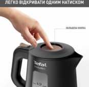 Tefal продумав все, щоб полегшити вашу повсякденне життя. Завдяки великій зручній кнопці відкриття/закриття на кришці та великій ергономічній ручці чайник зручно наповнювати. Цей відмінний ергономічний і зручний електричний чайник досить легкий і компактний, має об'єм 1 л і велике віконце рівня води з кожного боку з великими, чіткими та видимими позначками, Вам більше не доведеться придивлятися, що б проконтролювати рівень набраної або води, що залишилася. Підставка чайника обертається на 360° і має контрастне кольорове кільце, справжній візуальний помічник для більш легкого розміщення під будь-яким кутом. Чайник також оснащений великою кнопкою зі світловим індикатором і зручним носиком для більш точної подачі.