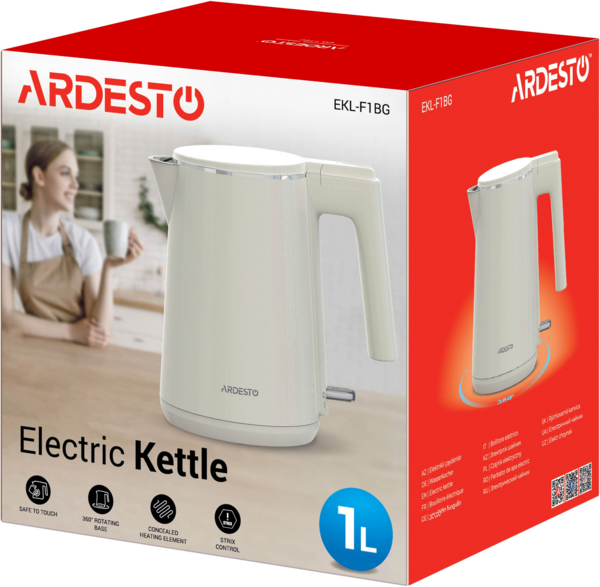 Новинка від Ardesto електрочайник EKL-F1BG об'ємом 1 літра, якого достатньо для приготування кількох чашок улюбленого напою.