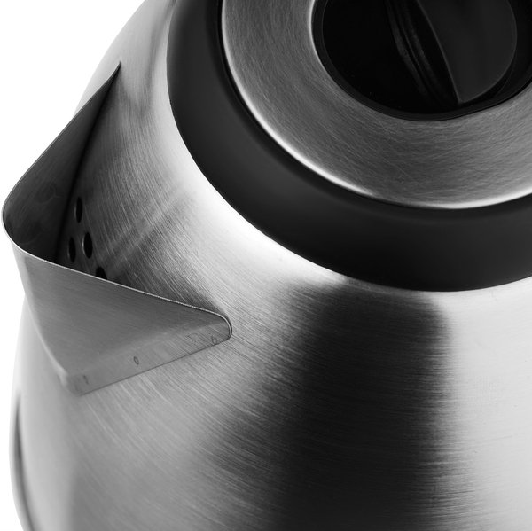 Для відкриття кришки є зручна ручка, а за включення відповідає окрема клавіша. Довжина дроту підставки складає 60 см. Нагрівальний елемент – прихований. Його ефективне розташування разом з потужністю у 1500 Вт забезпечує швидке досягнення заданої температури. Для безпечного використання передбачено автоматичне відключення після закипання та при відсутності води.