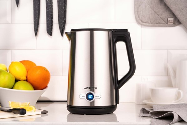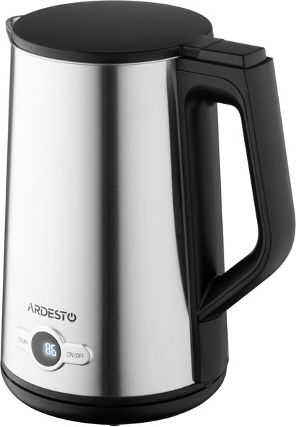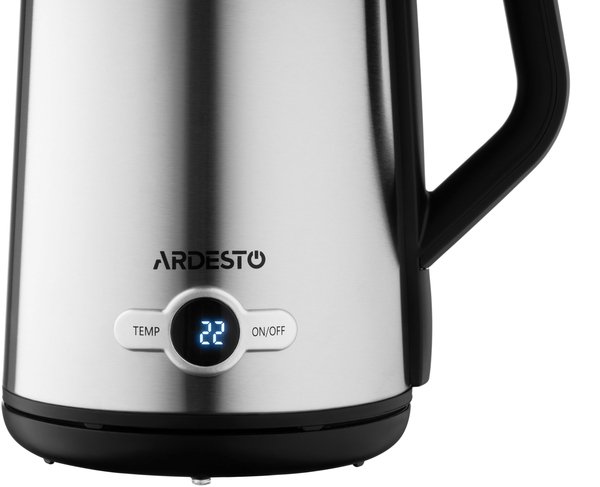 Електрочайник ARDESTO EKL-X52E створений для максимального комфорту. Має потужність 1 850 – 2 200 Вт та об’єм 1,5 л. Елегантний корпус із нержавіючої сталі ззовні та всередині оснащено подвійними стінками. Strix-контроль гарантує безпеку та працездатність, пристрій витримує до 12 000 циклів закипань. Завдяки електронному термостату з можливістю налаштування 5 режимів (60°, 70°, 80°, 90°, 100°) і LED-дисплею можна встановити потрібну температуру для будь-якого виду напоїв. Продумана система контролю нагрівання та відключення в разі закипання та відсутності води захищає від перегрівання та надмірного використання електроенергії. Бездротова база із обертанням на 360° має стійкі ніжки, що не дадуть ковзати чайнику. Комфорту під час використання додають тиха робота та світлова індикація.