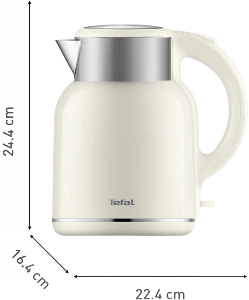 Крутий електрочайник, а головне, що має захист від включення без води, це є важливим, оскільки маю малих дітей) Ціна доступна, це не перша техніка від Тефаль, думаю, прослужить довго. Об'єм великий - на 1.9 літрів Виглядає гарно, білого кольору і сіре покриття, матеріал корпусу - пластик, форма самого чайника дуже прикольна)) Нагріває та кіп'ятить воду швидко)
