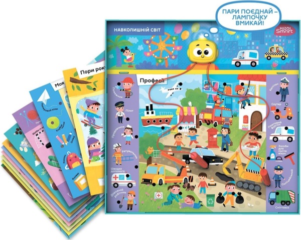 Електронна логічна гра Kiddi Smart - Вікторина "Навколишній світ" – неймовірна та захоплива вікторина, яка допоможе дитині дізнатися багато цікавого. Треба знайти та правильно поєднати логічні пари: звірят та їхні домівки, пори року та заняття, людей та професії, страв та їхні інгредієнти, та багато іншого. Малюку обов’язково сподобається поєднувати кольорові зображення та шукати правильні пари, адже при кожній правильній відповіді лампочка на голові робота буде світитися. А різне розташування відповідей на всіх картках спонукатиме дитину покладатися на свої знання. Нумо разом навчатися та гратися.