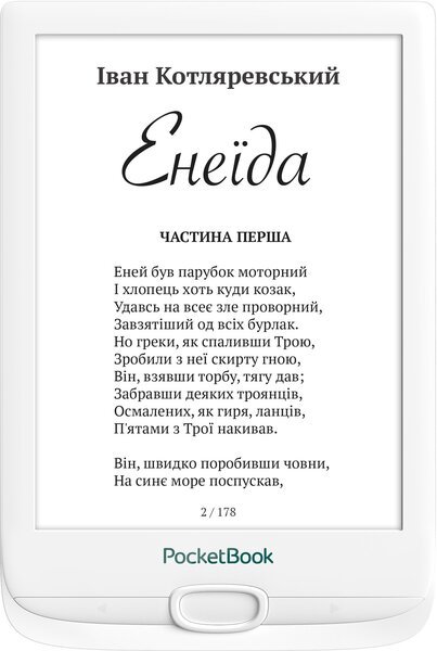 PocketBook 606 – модель початкового рівня з новим ультракомпактним дизайном. Крім того, при вазі в 145 г вона є найлегшим рідером в нашій лінійці. Модель Оснащена екраном останнього покоління E INK Carta І акумулятором, що забезпечує до півтора місяців автономної роботи. Все необхідне для комфортного читання – і за приємною ціною.
