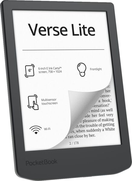 PocketBook Verse Lite оснащений 6-дюймовим дисплеєм E Ink Carta, що забезпечує приємне читання. Екран розроблено з урахуванням вимог безпеки для очей, що знижує навантаження під час тривалих сеансів читання. Завдяки безбліковій технології E Ink користувачі можуть комфортно читати за будь-якого освітлення, як у приміщенні, так і на вулиці. Папероподібний екран E Ink Carta дає змогу користувачам зануритися в читання улюблених книг у будь-який час і в будь-якому місці.