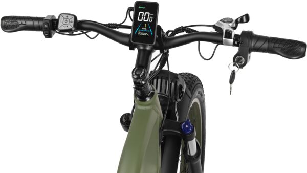 Електровелосипед 2E EB19 має інформативний дисплей, на якому відображено рівень заряду батареї, індикатор головного світла, поточну та максимальну швидкість, кілометраж поїздки та індикатор передачі.