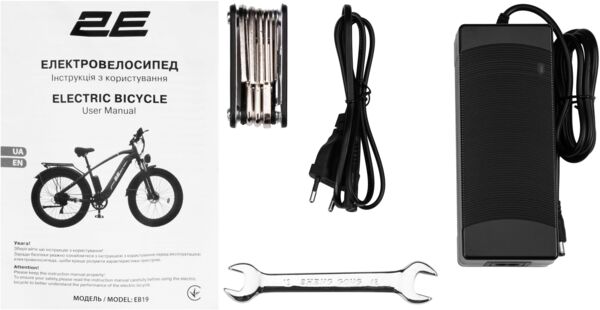 | Комплектація (можливі зміни в різних поставках) | Велосипед, Документація, Зарядний пристрій, Набір інструментів |