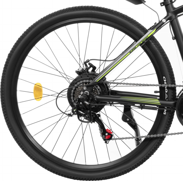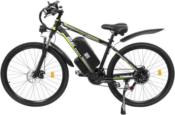 Електровелосипед вирізняється стриманим дизайном, у якому гармонійно поєднано зелений і чорний кольори: це додає йому сучасного вигляду, який чудово пасує до будь-якого стилю - від урбаністичного до спортивного. З розміром 176х68х101 см модель є доволі зручною для зберігання і використання за міських умов, а також для подорожей за містом.