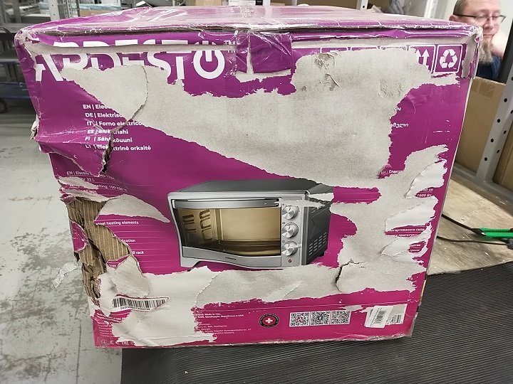 | Комплектація | Документація, Піч, Піддон для крихт, Деко, Решітка для гриля, Ручка для безпечного вилучення дека/решітки |