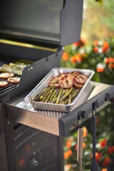 Алюмінієва місткість Weber відмінно підходить для уловлювання крапель жиру, а також ідеально підійде для приготування лазаньї, овочів або навіть шоколадних тістечок. Додатково ви можете використовувати місткості для тривалого приготування, наприклад копчення або ставити під рожном для безпечного збору жиру і соків. Прості піддони можуть врятувати вас від безлічі робіт з обслуговування. Вони бездоганно встановлюються в лоток для крапель вашого гриля, щоб утилізація жиру відбувалась просто та без забруднення.