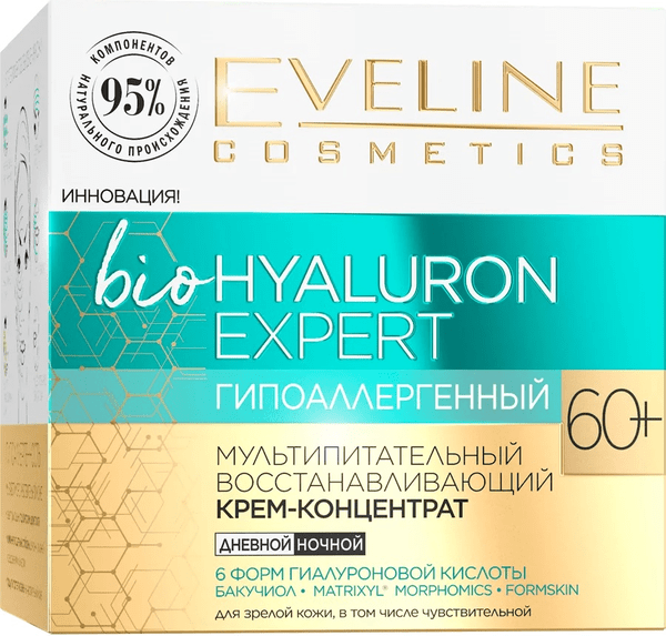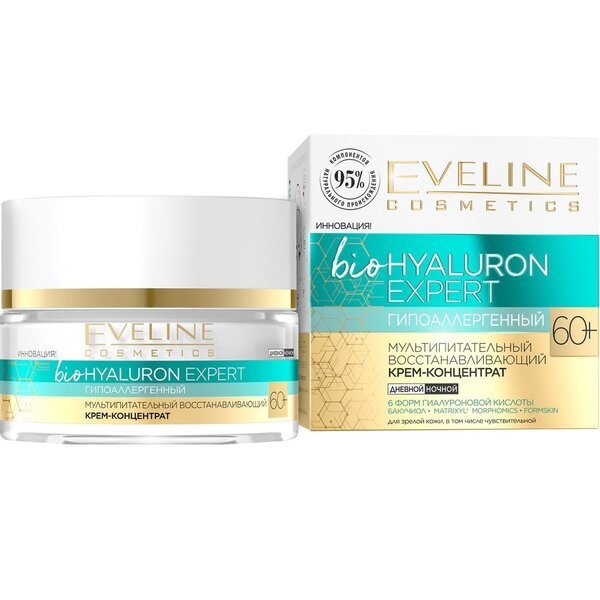 Eveline Cosmetics Гіпоалергенний мультипоживний відновлюючий крем-концентрат 60+ серії biohyaluron expert, 50 мл
