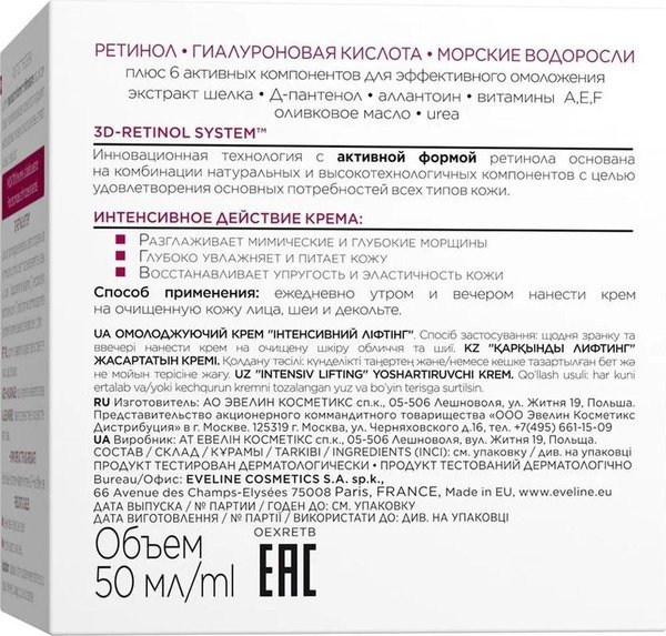 Схожі товари Eveline Cosmetics Крема-6 компонентів: омолоджуючий крем-інтенсивний ліфтінг Морські водорості 50мл