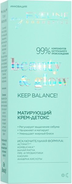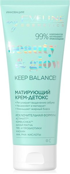 Крем-детокс для обличчя Eveline Cosmetics Beauty&Glow Матуючий 75мл