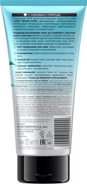 Eveline Cosmetics Очищуюче-зволожуюча пінка для вмивання серії i love vegan food, 175мл