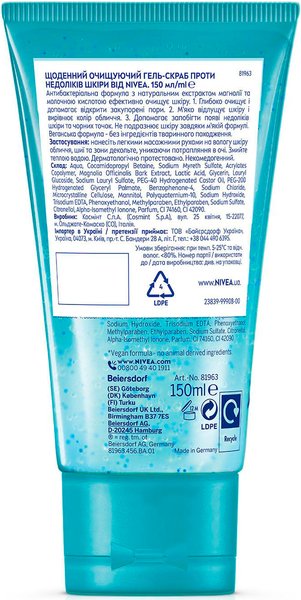 Схожі товари Щоденний гель-скраб для вмивання Nivea Очищення пор 150мл