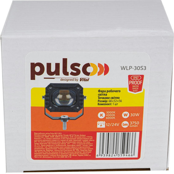 - Фара робочого світла PULSO Spot 9-36В 3000-4300-6000K 68x52x56мм (WLP-30S3)