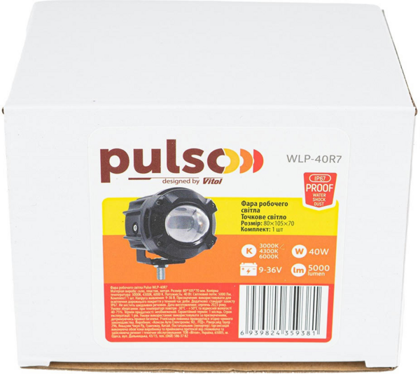 - Фара робочого світла PULSO Spot 9-36В 3000-4300-6000K 80x105x70мм (WLP-40R7)