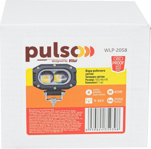 Опис Фара робочого світла PULSO Spot 9-36В 6000К 102х66х95мм (WLP-20S8)