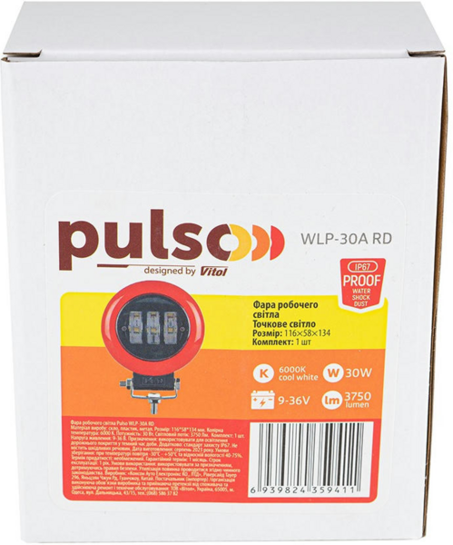 - Фара робочого світла PULSO Spot 9-36В 6000К 116х58х134мм (WLP-30A_RD)