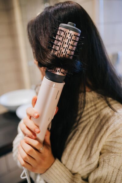 Ця фен-щітка 1000 Вт забезпечує оптимальний рівень потоку повітря та лагідне сушіння для прекрасних результатів щодня.