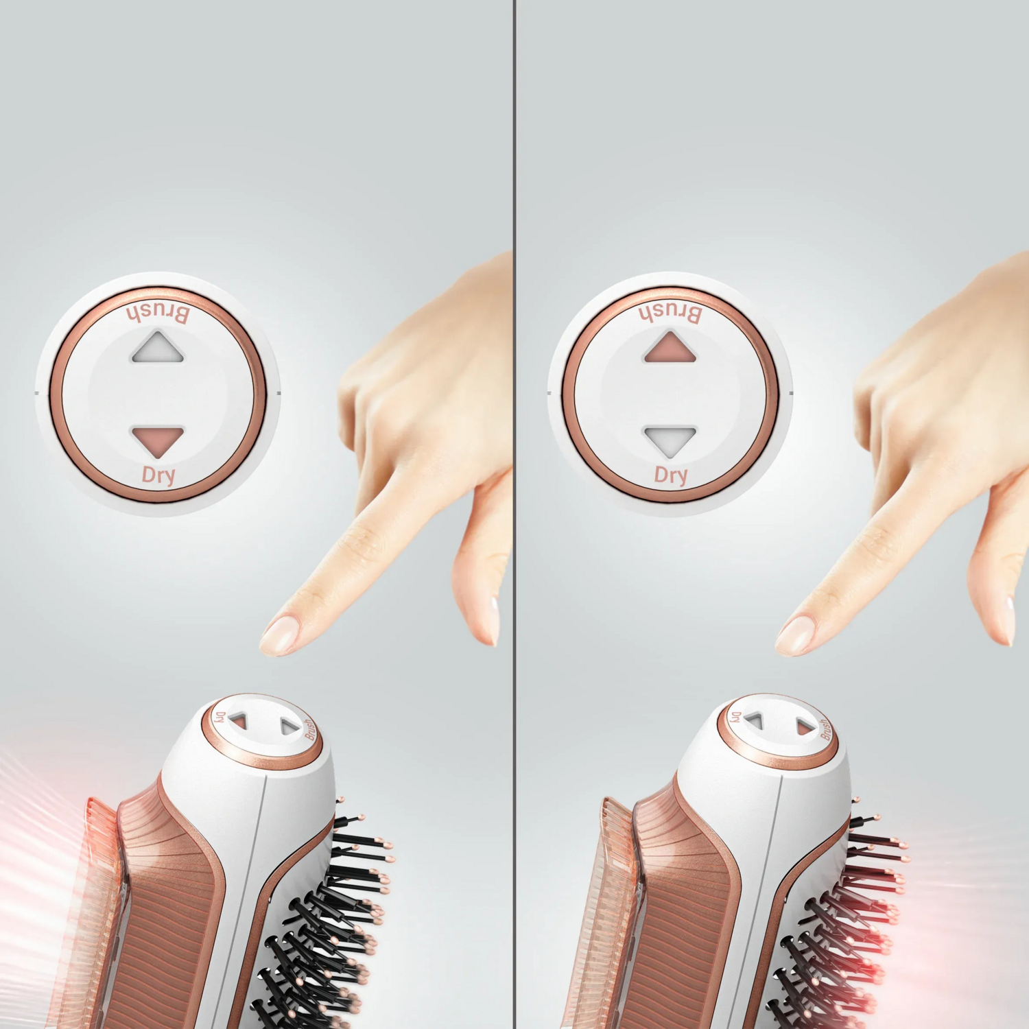 Унікальна функція перемикання дозволяє перемикатися з режиму фена на режим щітки гарячого повітря одним натисканням.