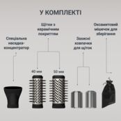 2 обертові щітки (40 та 50 мм) для всіх типів волосся для прекрасного вигляду та абсолютної універсальності — з концентратором, що входить до комплекту, для високоточного укладання.