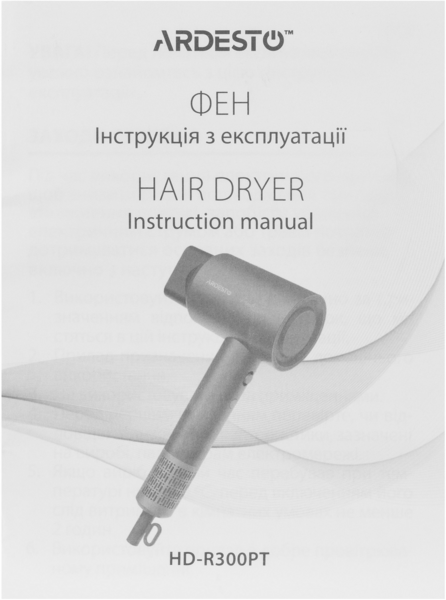 Інструкції Фен ARDESTO HD-R300PT