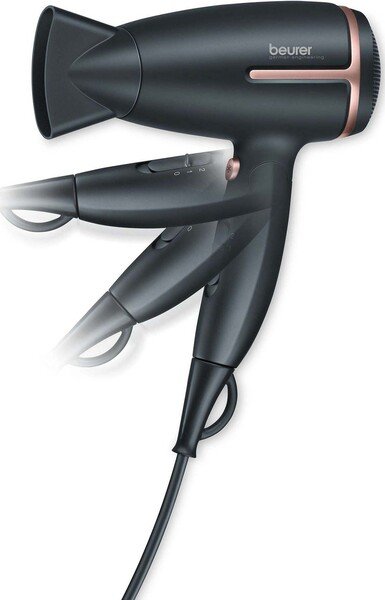 Дорожній компактний фен зі складною ручкою. Ідеальний варіант для поїздок, професійне сушіння й укладання в будь-яких умовах. Вбудована функція іонізації для розкішного блиску волосся.