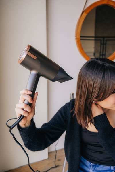 Навіщо витрачати на сушіння волосся більше часу, ніж потрібно? Мотор потужністю 2000 Вт, гідний салону, створює швидкість повітряного потоку до 120 км/год для прискорення сушіння на 25%.